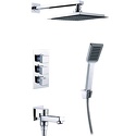 Устройство: душевая система • Смеситель: термостатический • Ручная лейка: размер 60 мм, настройки 1 шт • Верхний душ: размер 200 мм, настройки 1 шт • Комплектация: ручной душ, смеситель, шланг, крепление ручного душа